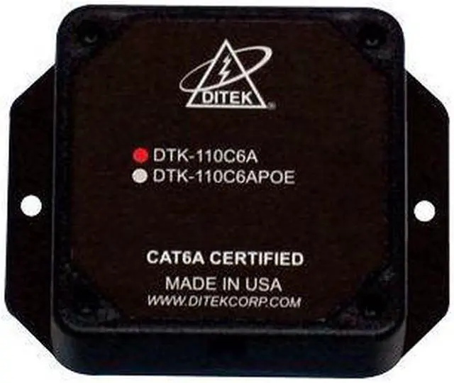Information >Information Name : CAT6A POE SURGE PROT/110IN/OUT Category : Ditek, Video Surveillance, Power UPC Code : 782980518590 Dimensions:5.4 L x 3.3 W x 1.3 in. H UNSPSC:39121610 Additional Features:Hybrid Design, Multi-Stage, SAD Technology Watts:76.8 W Width:1.3 in ECCN:EAR99 Country of Origin:US - USA