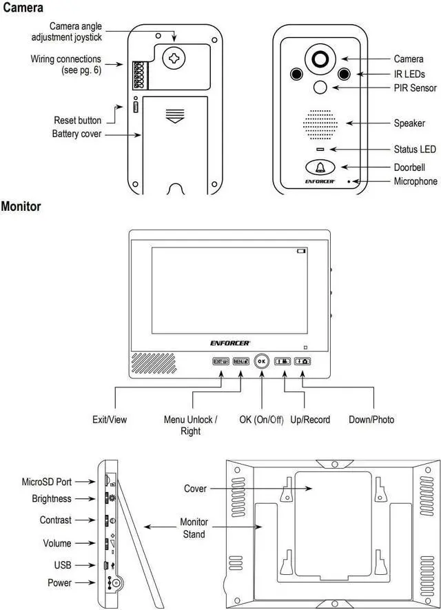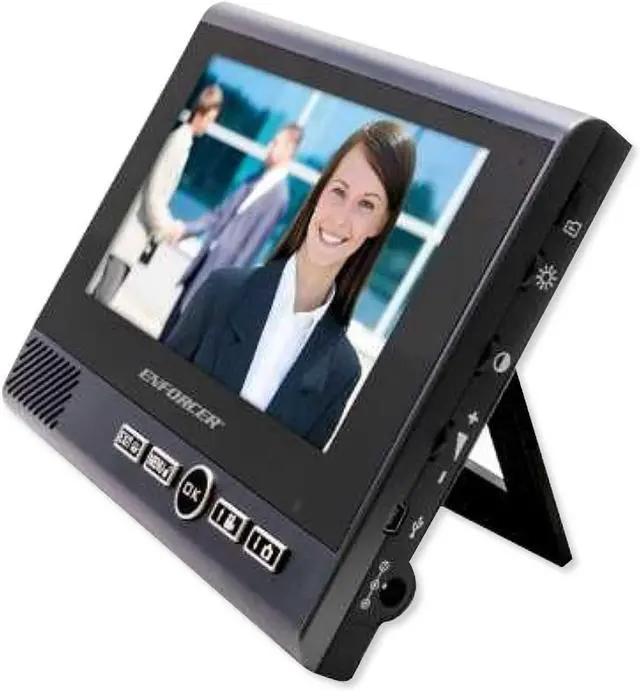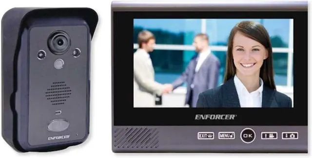 The ENFORCER Wireless Video Door Phone is a convenient and secure way to monitor and control an entryway, such as a door or gate, from up to 492 feet (150 meters)* away. When a guest or visitor presses the doorbell button on the camera unit, the homeowner can use one of up to three lightweight, wireless LCD monitors to see who is requesting entry, speak with the caller, take a photo, and decide whether to grant entry. The video door phone can be expanded with up to two additional monitors and one additional camera. If multiple monitors are set up, then the system can also be used as an intercom system between each monitor.