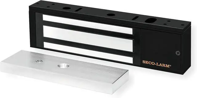 Seco-Larm E-941SB-1200 Electromagnetic Lock, 1200-lb Holding Force, MOV Surge Protection, Anodized Aluminum Housing with Black Finish, Adjustable Mounting Bracket, 12/24VDC Selectable