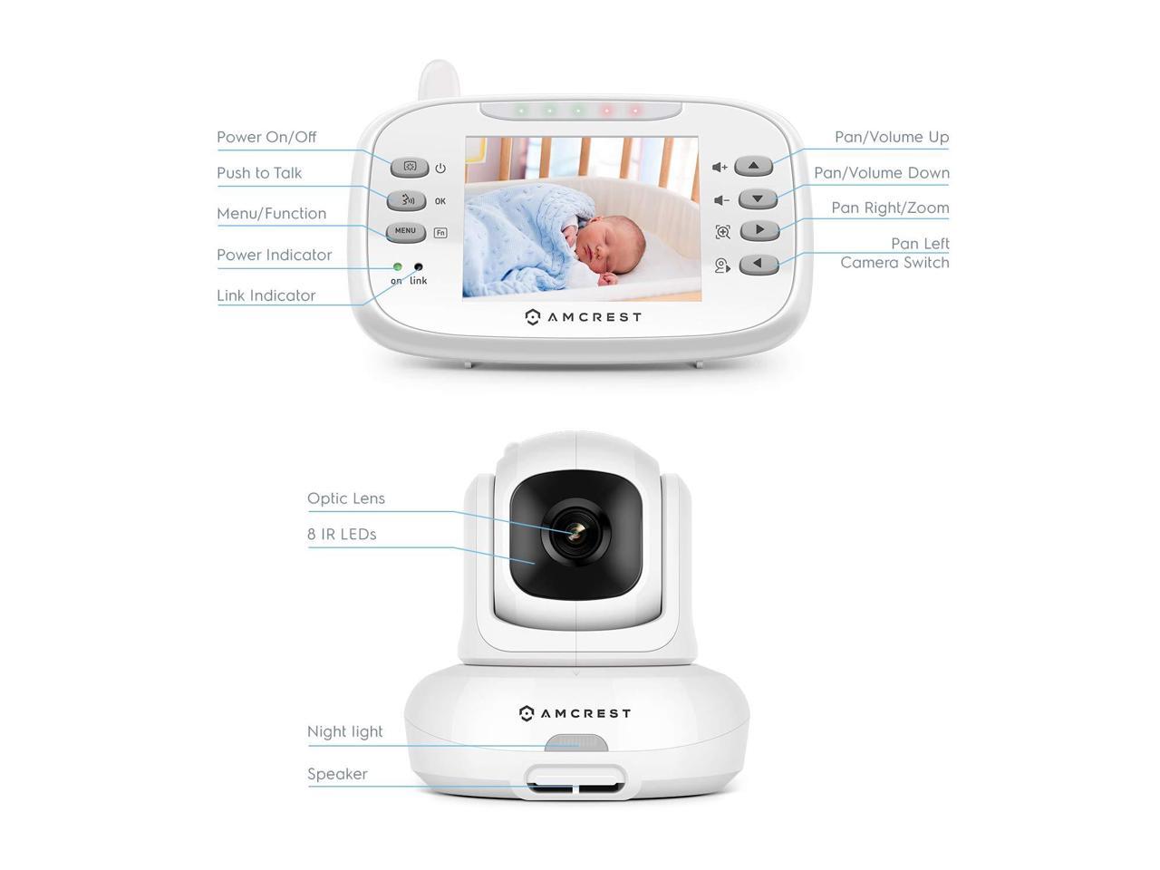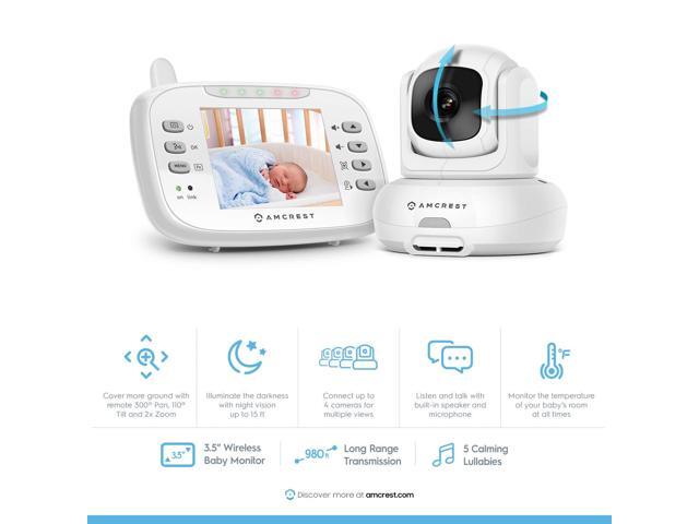 - 3.5 DISPLAY & SECURE CONNECTION: The Amcrest video baby monitor with camera and audio features a high quality 3.5inch display and 2.4ghz wireless connection with secure FHSS technology. Remote pan, tilt and digital zoom allows you to cover every angle and get upclose. Built-in microphone & speaker allows for two-way communication.