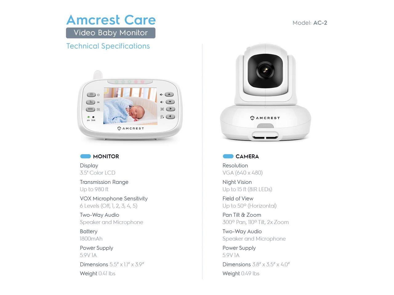 Amcrest AC-2 Video Baby Monitor with Camera and Audio, 3 LCD Display, Two-Way Audio, Temperature and Voice/Audio Alarm, VOX Mode, Pan/Tilt/Zoom Security Camera, Night Vision, (Refurbished)