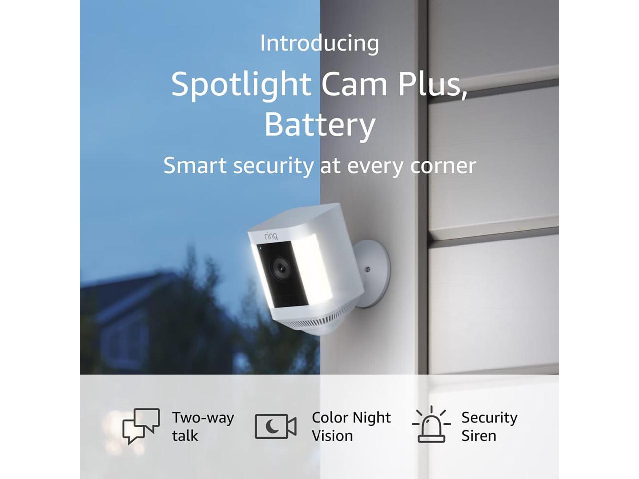 Ring Spotlight Cam Plus - Battery - Two-Way Talk - Color Night Vision - Security Siren - White - 2022 Release B09JZ5BG26