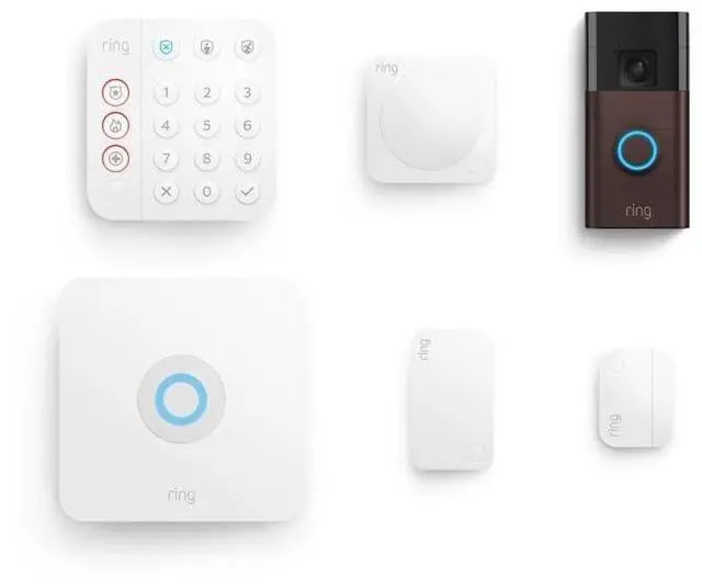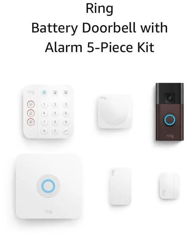 This bundle includes Battery Doorbell (Venetian Bronze) with Alarm 5-piece (White).