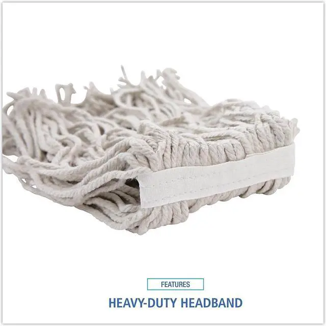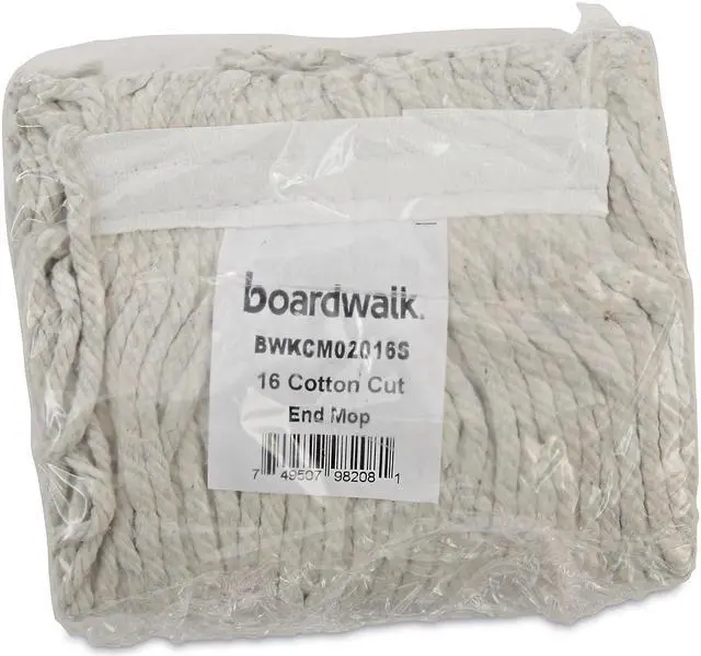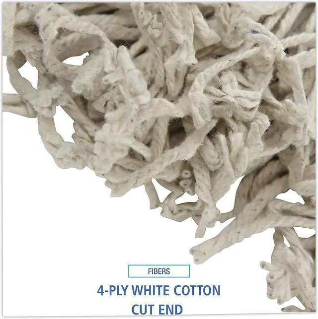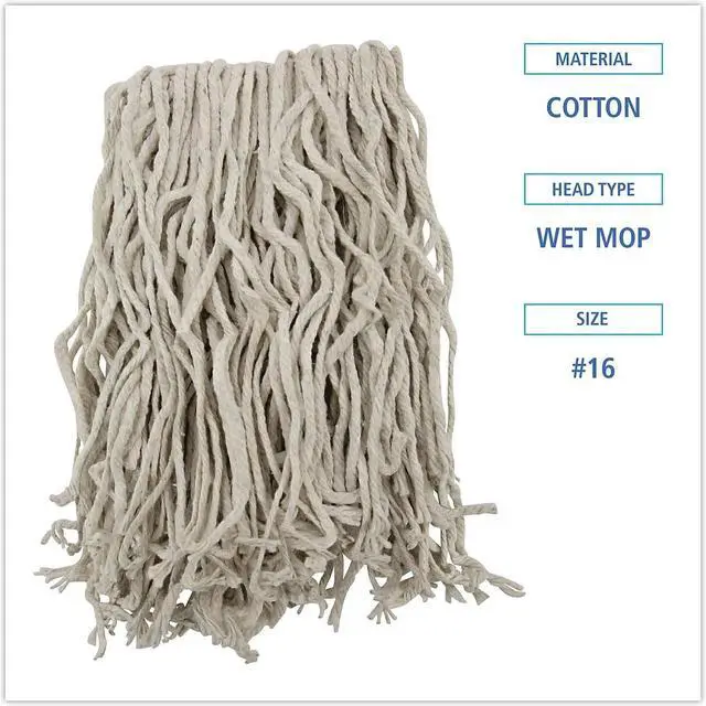 Absorbent Natural Cotton Fiber For General Mopping. Four-Ply, Cut-End Yarn. Standard Heads Use Clamp-Style Mop Handle. Head Type: Wet Mop; Application: Floor Maintenance; Mop Head Style: Cut End; Mop Head Size: #16.