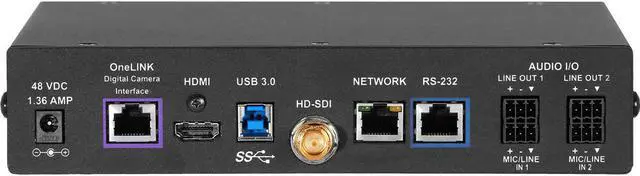 OneLINK Bridge connects a non-USB camera and audio source, and bridges to a USB stream for easy connection to USB-based conferencing applications such as Skype for Business, Google Hangouts, and Zoom.
