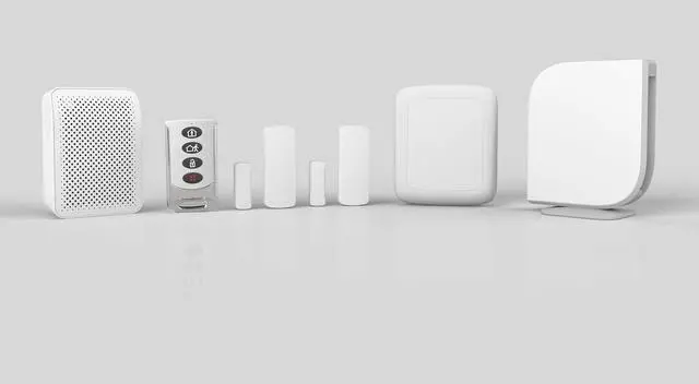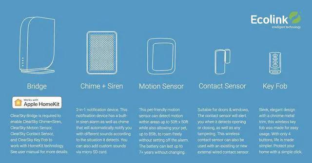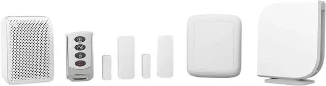 YOUR ECOSYSTEM INCLUDES: (1) bridge, (1) chime + siren, (2) contact sensors, (1) motion sensor (1) key fob, (1) power supply and (1) ethernet cable