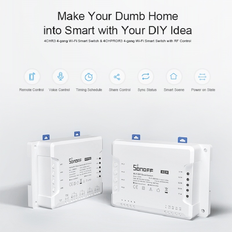1. Rated voltage: 100-240V 2. You can acces self-locking,interlock and inching mode on APP directly 3. One Channel controls one work status,enable interlock to turn on 1 channel and turn off other channels simultaneously 4. The durable flame-retardant PC shell provides the safety for connected devices in use 5. Easy to install