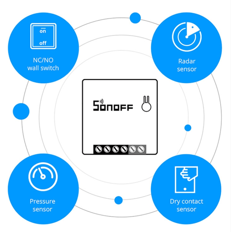 Use smart phones or voice commands to easily automate household appliances in the eWeLink app. It supports 3 trigger modes, namely pulse mode (applicable to button switches), edge mode (applicable to SPDT switches) and the following modes (applicable to switches marked as "ON" and "OFF" and with dry contact output Sensor). It supports a DIY mode (designed for developers), which allows users to integrate MINIR2 into a third-party smart home control system, thereby achieving LAN control without cloud services (such as home assistant, openHAB).