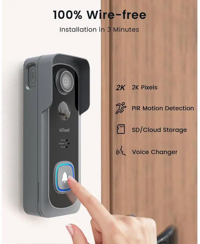 ieGeek 5MP Doorbell Camera Wireless No Subscription- Video Doorbell Wireless with Chime, Doorbell with Camera, Voice Changer, 2-Way Audio, PIR Motion Detection, 2.4Ghz WiFi, Compatible with Alexa