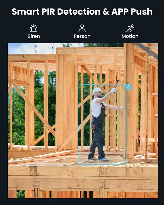 Smart Alerts & Two-Way Audio  Advanced PIR motion detection instantly alerts you to people-not pets or wind. Customize detection zones and receive real-time push notifications. With built-in two-way audio, you can talk to visitors, warn intruders, or communicate remotely with ease.