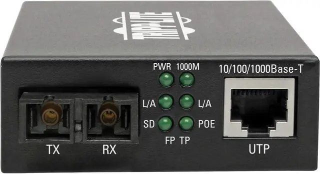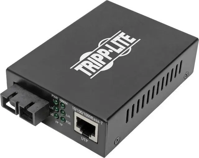 Extend Your Gigabit Ethernet Signal up to 12. 4 Miles via SC Single mode Fiber CableThis economical unit converts a copper Ethernet signal to single mode fiber (and vice versa) to extend a 10/100/1000 Mbps Gigabit Ethernet connection up to 12. 4 miles (20 kilometers). Because Cat5e/6 cables are limited to only 100 meters, it is more effective to couple the N785-INT-SC-SM with single mode fiber cable to reach greater distances. This could include providing network connectivity to employees in a secluded area of a facility, college or branch office or connecting multiple office workstations to a switch located in a separate building. Supports Auto-Sensing of Network Speed and Other Advanced FunctionsMonitoring and controlling your network nodes is easy with the N785-INT-SC-SMs advanced features, such as automatic network speed sensing, full/half-duplex auto-detection and automatic MDI/MDIZ configuration. Six LEDs indicate the converters Ethernet network and fiber link status at a glance. Supports Single mode Fiber Cable with SC ConnectorsTwo N785-INT-SC-SM converters are needed to extend an Ethernet network connection. Single mode fiber optic cabling with SC ends (such as Tripp Lites N356-Series, sold separately) connect the two converters. Copper Cat5e/6 cabling (see Tripp Lites N201-Series, sold separately) connects one converter to your network device, such as a server, and the other converter to a network switch. Completely Plug-and-Play with No Additional Software Required for ConnectionThe compact metal converter is easy to install and set up with no software or drivers required. The included power supply connects to a convenient AC outlet with no computer or other signal source needed. International plug adapters for North America (NEMA 5-15P), the United Kingdom (BS 1363), Europe (CEE 7/16 Schuko) and Australia (AS/NZS 3112) are included.