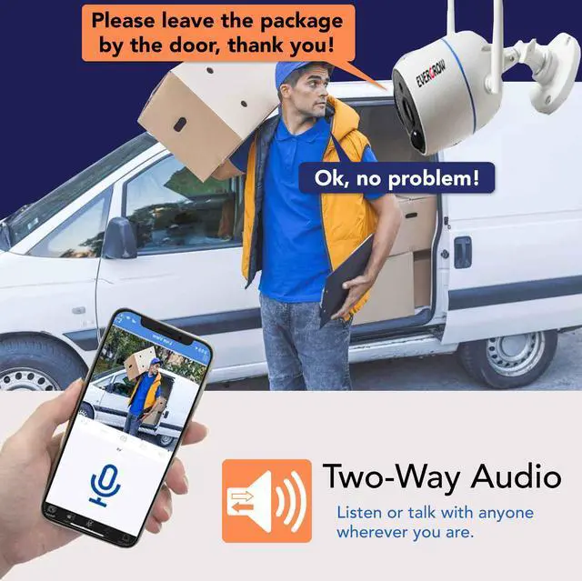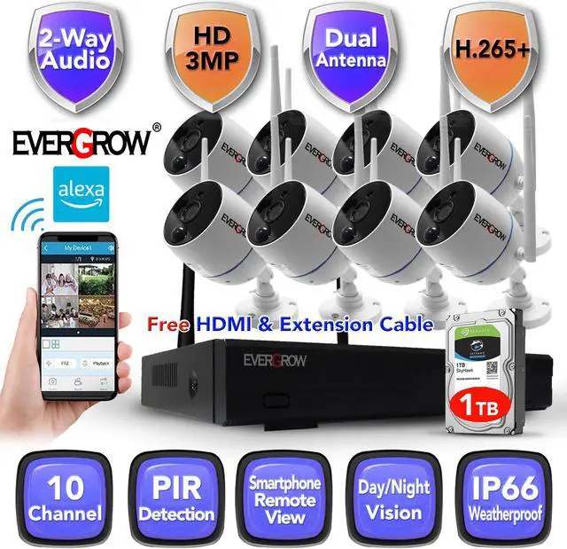 Our Home Security Systems is wireless but it still need to plug into power supply. Our NVR can keep recording without internet. It also allows you to view the live video remotely anytime and anywhere on your phone or pad. With a 2304*1296P HD resolution and 3.6mm lens, it can provide crystal clear image quality. The IP66 waterproof material allows you to install both indoor & outdoor.