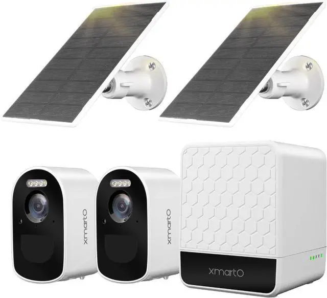 Easy-use Camera SystemThis is a prepacked camera set with 2 wireless security cameras, 2 solar panels and a WiFi base station. With AUTO-PAIR technology, you only need to power on the devices and they start to work. No camera setting, no pairing and whatsoever is needed.