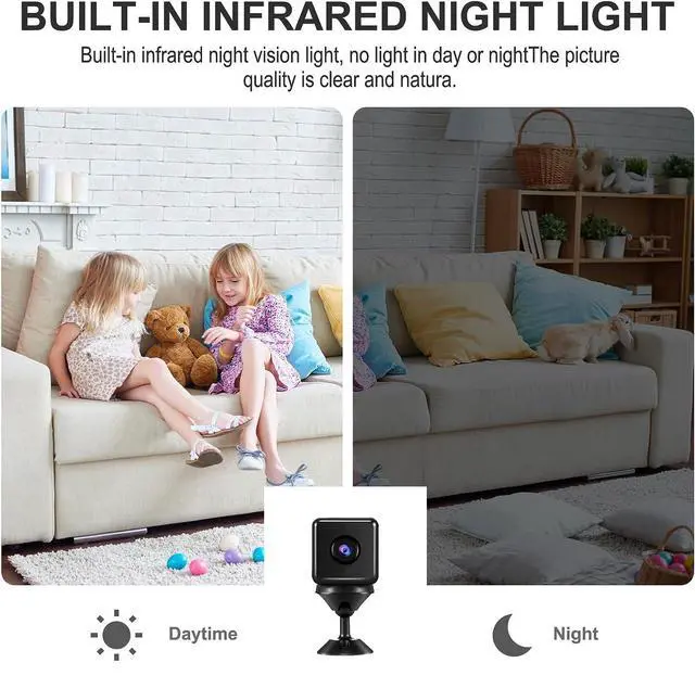 The wireless nanny cam hidden camera CCTV camera equipped with 4 infrared LEDs, which will automatically turn on for light compensation when ambient light is weak.The night vision provides excellent working range up to 20ft. See everything in dark environment through real-time in FHD.