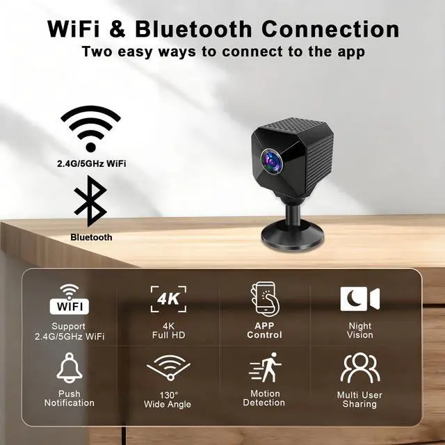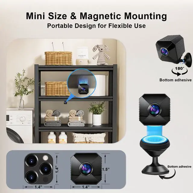 Mini Camera - 4K HD Nanny Camera | Dual-Band 2.4/5GHz WiFi Indoor Security Cam with AI Human Detection, Night Vision, Magnetic Design, Multi-User Sharing, Cloud & TF Storage for Baby, Pet & Elder