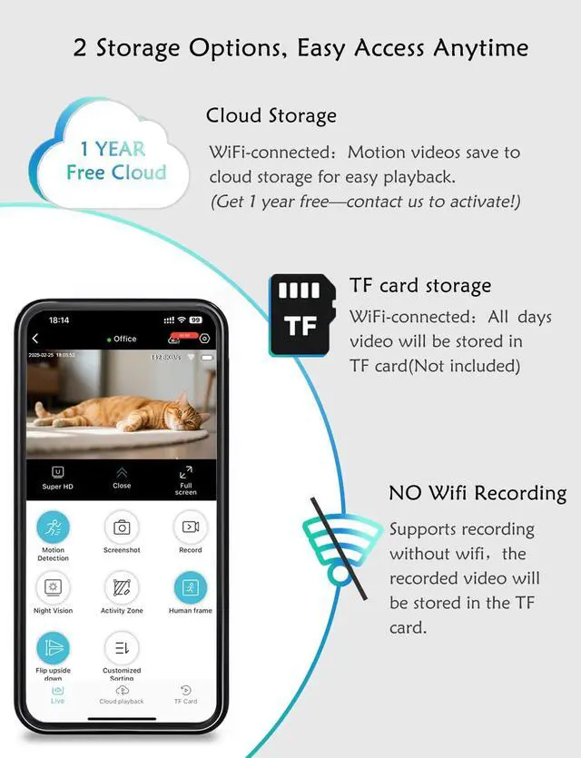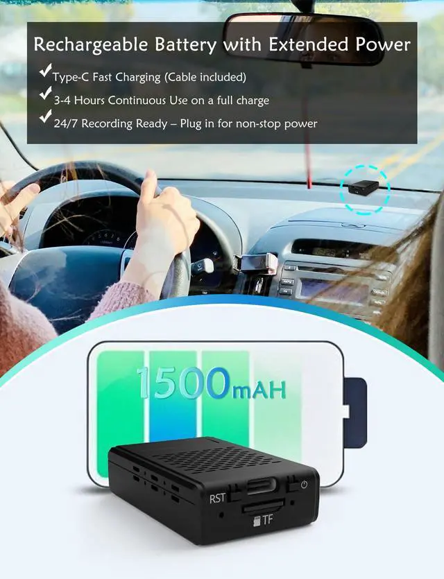 | Special Feature | Portable Size, 1 Year Free Cloud (trial), TF Card Storage, WiFi/Offline Recording, Motion Detection, 180° Rotating Lens, Magnetic Install |