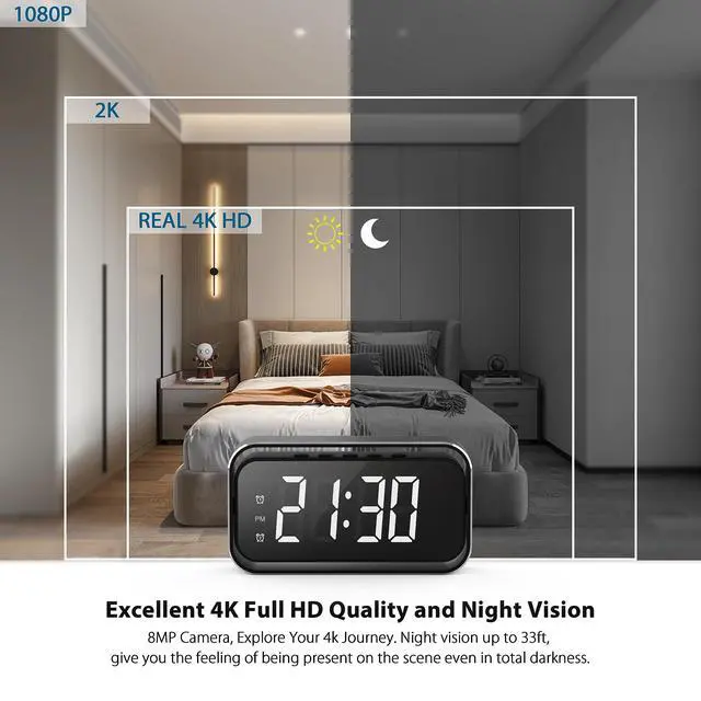- This wireless security camera clock is an awesome device. On the outside, it is your normal multi-functional digital clock, but on the inside, it is packed with something else. No one would suspect that an innocent alarm clock is made to keep an eye on you.