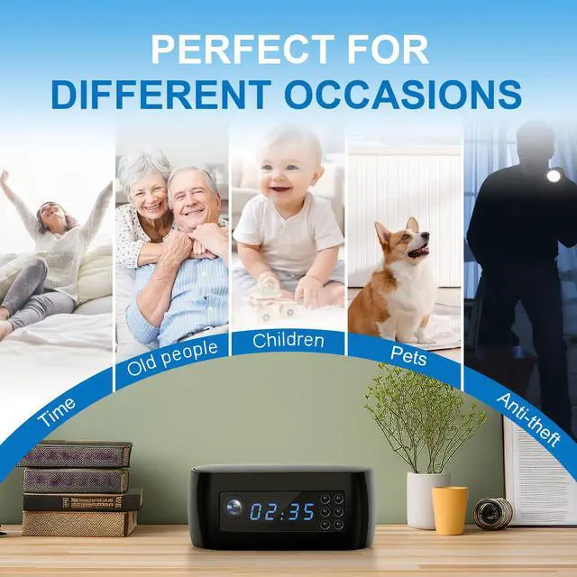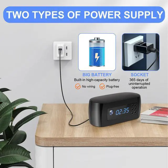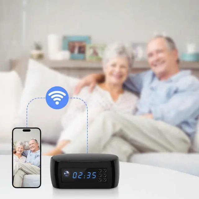 Hidden Camera Clock 4K HD Indoor Camera HD Wireless Camera Nanny Cam WiFi Cam Night Vision Motion Detection, No Audio Function, for Home/Office Security