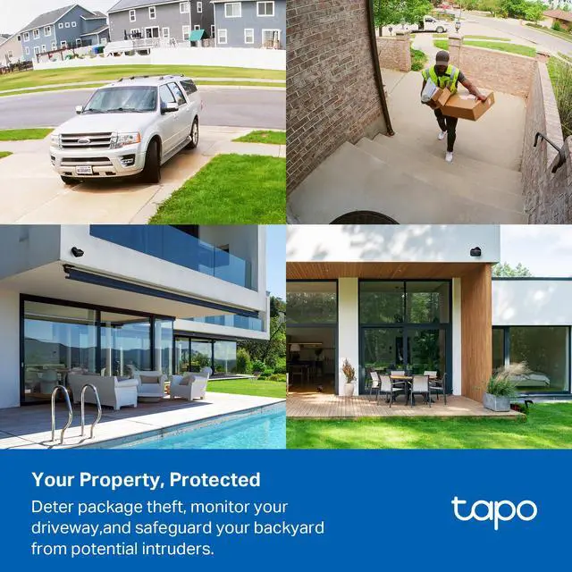 Enhance your home security with the Tapo C401 battery camera. Enjoy up to 180-days* of performance with its large rechargeable battery. Featuring Color Night Vision, 1080P Live View, and Free Person/Vehicle Detection, this camera ensures top-tier security with real-time alerts. Adaptable storage options include microSD card (up to 512GB)* and Tapo Care cloud service. Prioritize your privacy with encrypted video. The Tapo C401 offers seamless, reliable security for both indoor and outdoor use. Product dimensions are 3.19 x 1.89 x 2.3 inches. Purchase includes: Tapo C401 Camera, Camera Bracket, USB Adapter Cable, Mounting Screws, Mounting Anchors, Mounting Template Stickers, and a Quick Start Guide. *: 1. 180-day battery life is based on Tapo laboratory tests with 250s of use per day. The time of use includes recording and watching live views. Actual battery life may vary due to device settings, usage, router specifications, and environmental factors. 2. MicroSD card purchased separately. Actual storage capacity depends on the size of the microSD card used. 3. Compatible with Alexa and Google Assistant supported displays. User experience is dependent on the connected devices specifications.