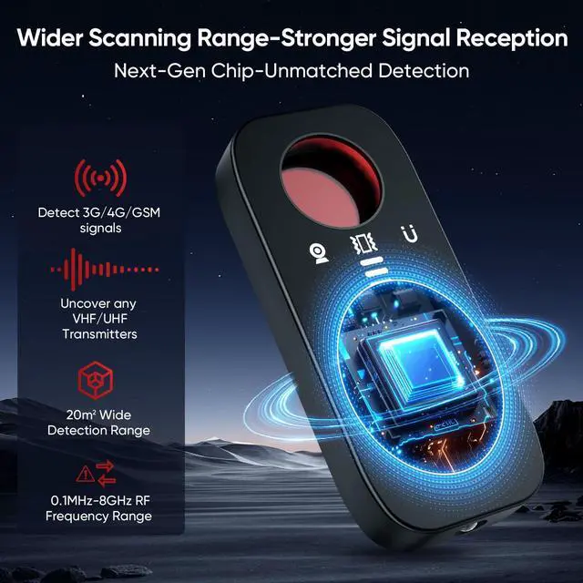 360° Privacy Protection in Any EnvironmentWhether you are checking into an VRBO, staying in a high-end hotel, or using a public gym locker room, this tool ensures your privacy remains intact. Tuned to a broad 0.1MHz8GHz frequency, it performs a 360° sweep of bathrooms, bedrooms, and offices in seconds, detecting threats even in hard-to-reach corners.