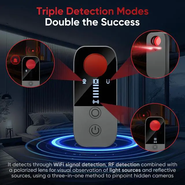 7-Mode Security Suite: 3 Scanners + 4 Safety ToolsMaster any situation with 7 versatile modes: 3 Advanced Scanning Modes (RF Detection, Infrared Laser, and Red Lens) to locate hidden hardware, plus 4 Essential Safety Functions (Sound Alert, Vibration Sensor, SOS Emergency Alarm, and Flashlight). Its not just a detector; its a complete personal security toolkit for travel and daily life.