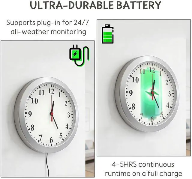 Long Lasting Battery & Non-Stop Power: Delivers 4-5 hours of continuous use on a full charge, and supports using while plugged in for 24/7 all-weather monitoring needs.