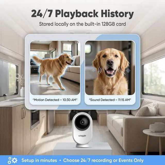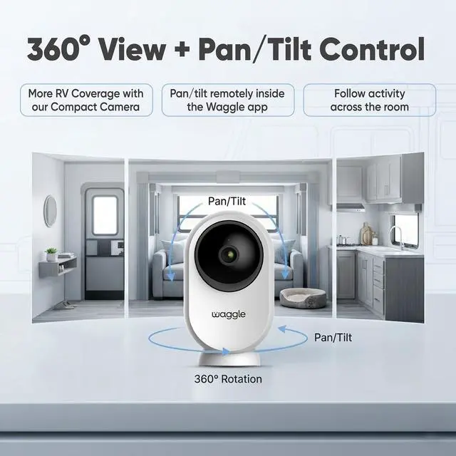 Stay connected to your pet on the road with Waggle RV Mini Camera. Real-time monitoring for a safe, cozy experience wherever you go