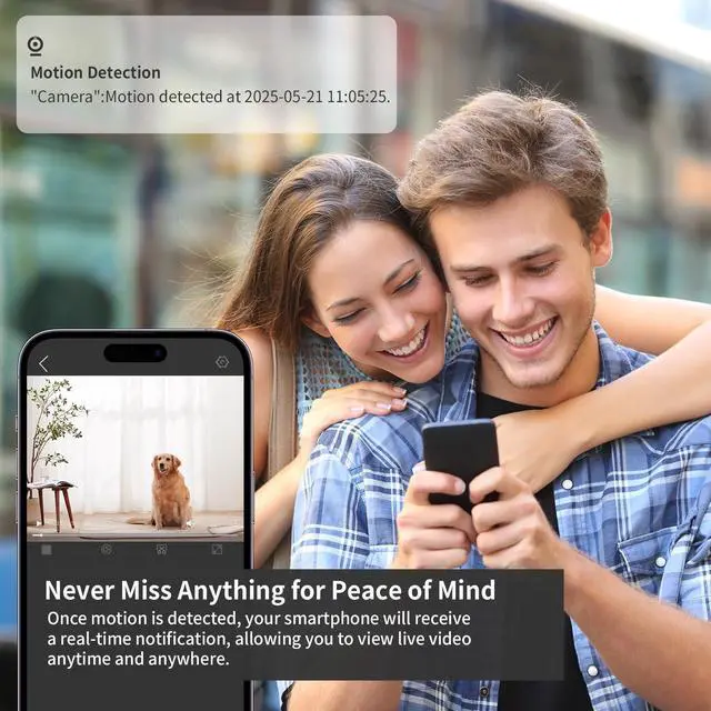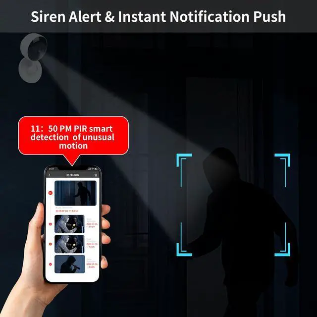 Smart Motion Detection & Instant Push NotificationsThe cameras for home security come with an advanced smart motion sensor and built-in siren. When motion is detected, the PIR sensor is triggered in real-time, sending instant notifications and alerts to your mobile app. You will never miss any important notifications and events that you care about.