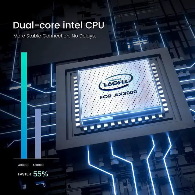 Stable Connection with Dual-core Processor:The data processing capability is comprehensively improved with a dual-core processor with a main frequency of up to 1.6GHz and NPU. The core can boost capacity and reduces interference for smoother 4k video streaming and AR/VR gaming.