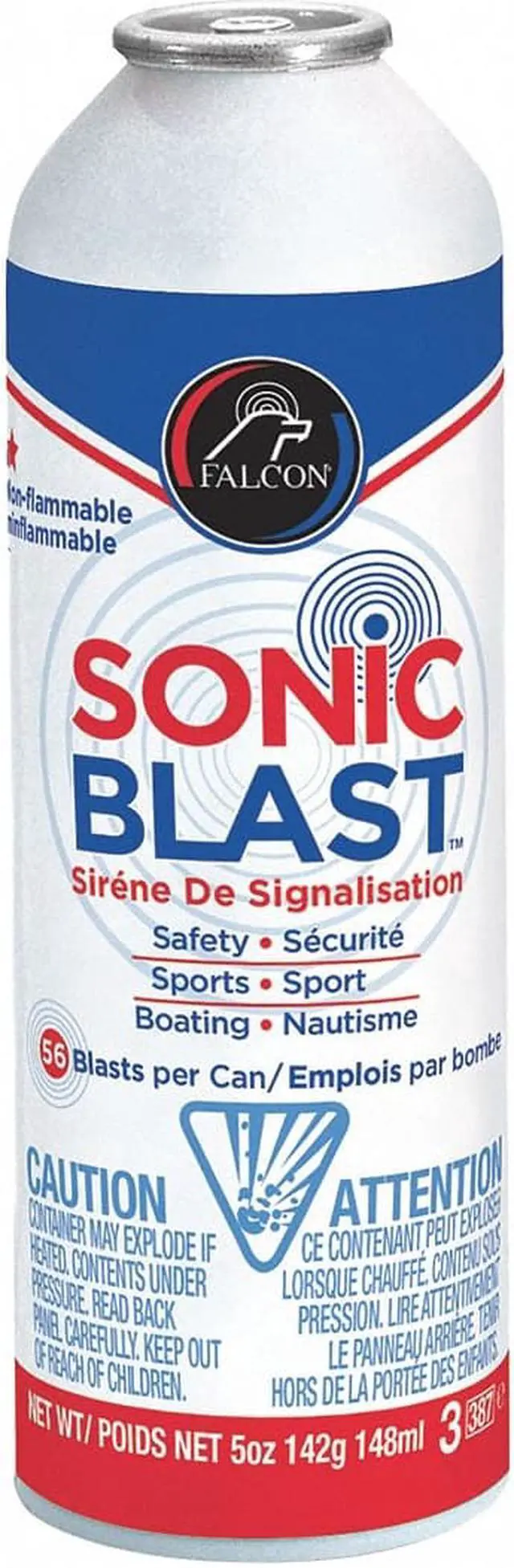 Personal Safety Horn Refill, Coverage 39 ft, Sound Level 120db, Horn Material Metal, Height 9 in, Length 2 1/2 in, Width 4 1/2 in, Propellant 1234ZE, Net Weight 5 oz, Operating Temp. 20 Degrees to 120 Degrees F, For Use With Alarm Systems, Personal Protection, Includes Refill Can