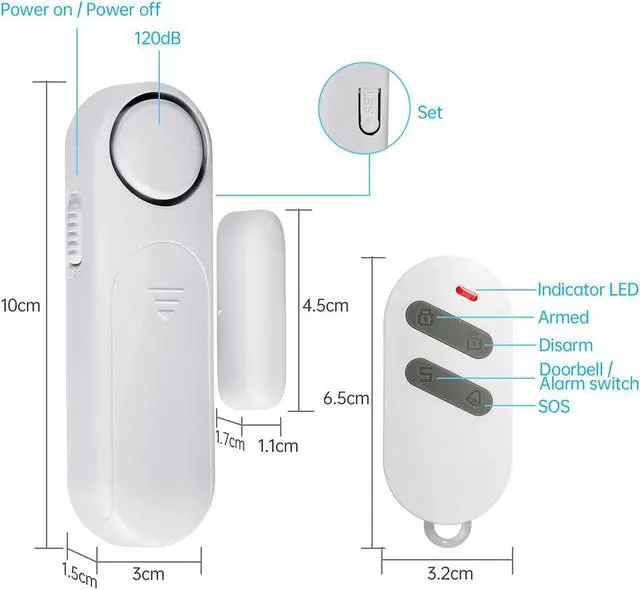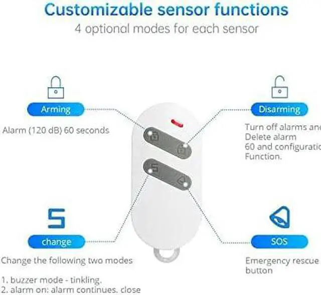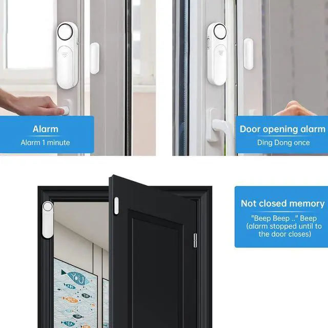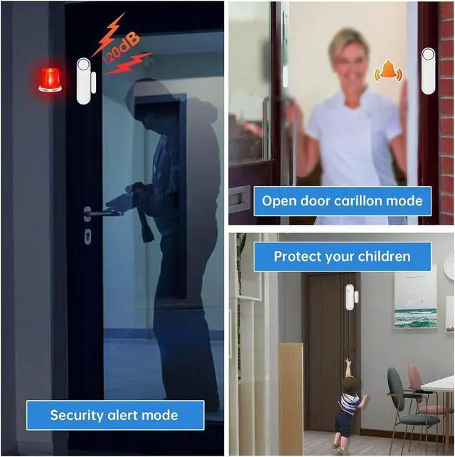 Door and window sensor alarm mode / standard alarm mode Door and window alarms can prevent theft and deter thieves with a loud 120dB alarm sound, thus protecting your doors and windows from unauthorized opening.