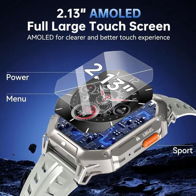 Health Tracking: The rugged waterproof fitness watch has a built-in high-performance sensor on the back for accurate heart rate monitoring. It can continuously measure heart rate, blood pressure, blood oxygen and sleep monitoring throughout the day, providing a full range of health tracking features so you can keep an eye on your health.