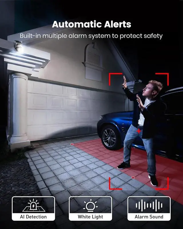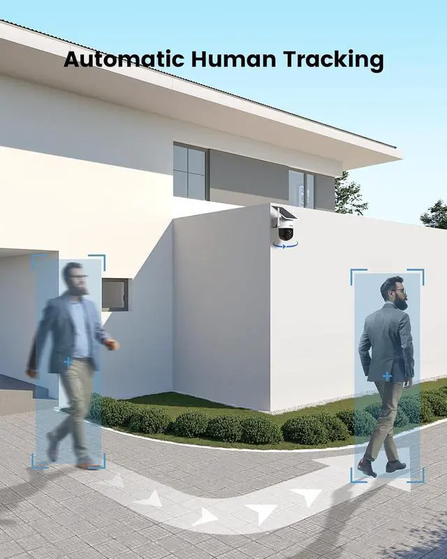 Automatic Human Tracking - When human motion is detected, the solar security cameras wireless outdoor automatically focuses on and tracks the moving people to record a more detailed event. Enjoy peace of mind knowing that your property is under great surveillance.