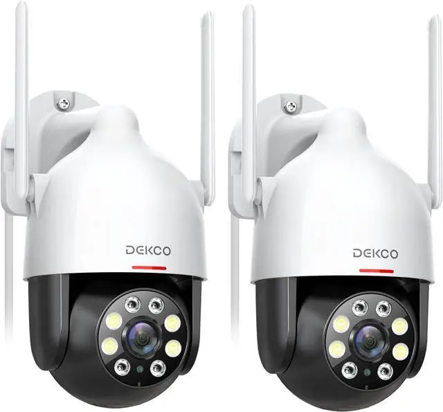 Two-Way Audio & IP66 Weatherproof Certification -- DEKCO home security cameras with built-in microphone and speaker can establish a real time conversation between you and your visitors. If you finding any unwelcome person, you can speak on App to let him leave, and live a relaxed life. PTZ waterproof cameras can withstand bad weather and have good outdoor working performance.