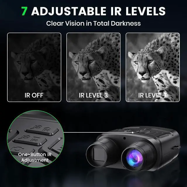 Night Vision Goggles with Tactical Flashlight for Day & Night Use Designed for reliable visibility in low-light and pitch-dark environments, these night vision binoculars combine infrared night vision with a built-in tactical illumination light for close-range assistance. Capture clear photos and videos for wildlife observation, hunting, night patrol, camping, and outdoor security
