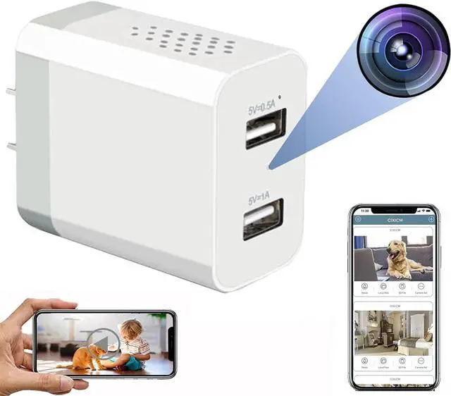 % The camera Lens is hidden between two USB port slots, It looks like a regular phone charger, there is no indicator and no sound when recording, No one will know this is a spy hidden camera. You can confidently plug it into your home, office, hotel, store, or even nursing home.