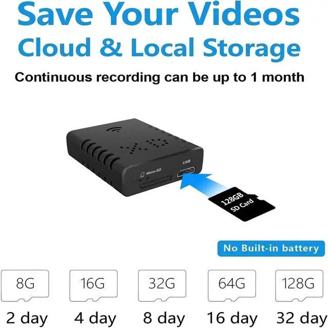 Can't get any smallerThe camera is only the size of a coin, size: 1.57X 1.18X 0.5 in, easy to carry, you can remotely view the live video of the app from anywhere in the world. As a security camera, keep a close eye on your home or office.