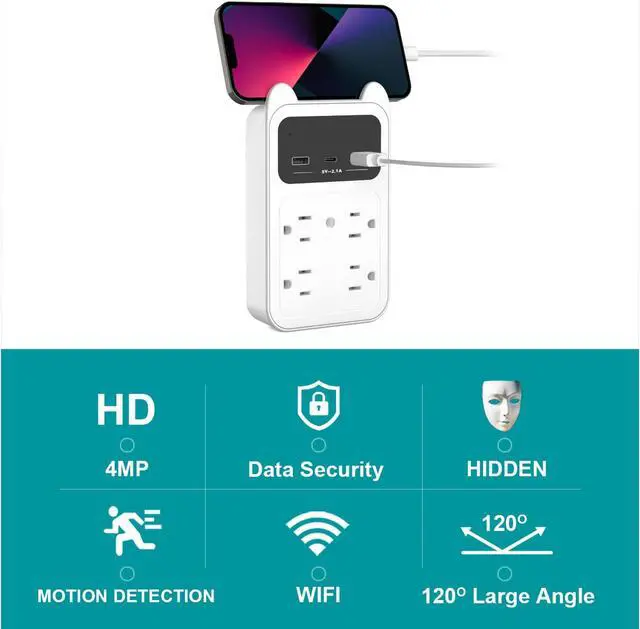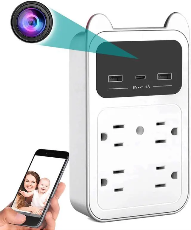 4 IN 1 Versatile Spy Camera ChargerIt looks like a general wall plug extender(4 AC outlets, 2 USB ports, and 1 USB Type-C port. ) However, it is a hidden spy camera with an invisible lens. Even if one suspects its presence, locating it remains a challenge. Ideal for discreet surveillance in homes, offices, hotels, or stores, this nanny camera not only offers convenient charging but also captures the vital information you seek.