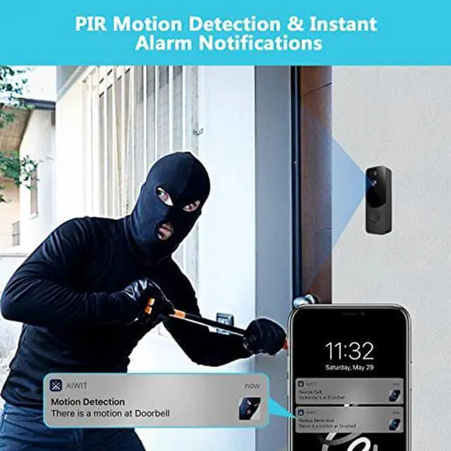 [(Two-Way Audio & Instant notifications)] If you expecting an important document by courier and wanted to be able to communicate with the delivery person when they arrived at. You can able to held down the doorbell wireless Two-way talk volume button and try to contact the driver In a short time .So you will never miss the delivery of important packages or documents, even if you are not at home, your phone can receive notifications for motion detection in time from Aiwit APP.