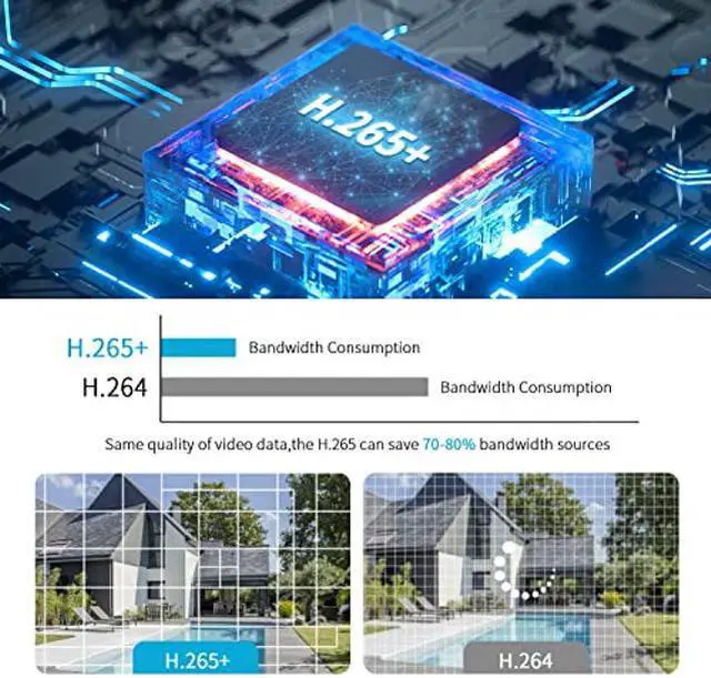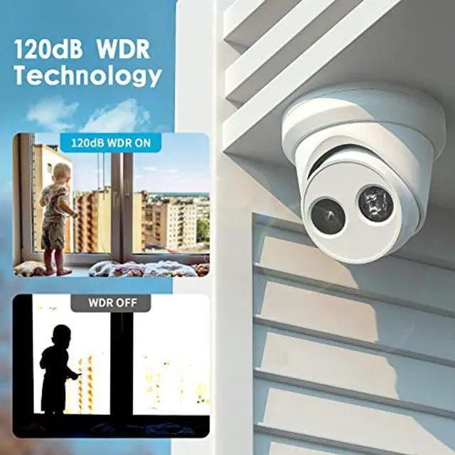 [(Smart H.265+,120dB WDR)] Smart H.265+ is the optimized implementation of the H.265 codec that uses a scene-adaptive encoding strategy, dynamic GOP, dynamic ROI, flexible multi-frame reference structure and intelligent 3D noise reduction to deliver high-quality video without straining the network. 120dB Wide Dynamic Range, 2.8mm fixed lens up to 93deg super-wide viewing angle allows you to see more detail and cover more ground to keep more of what you love safe 24/7.