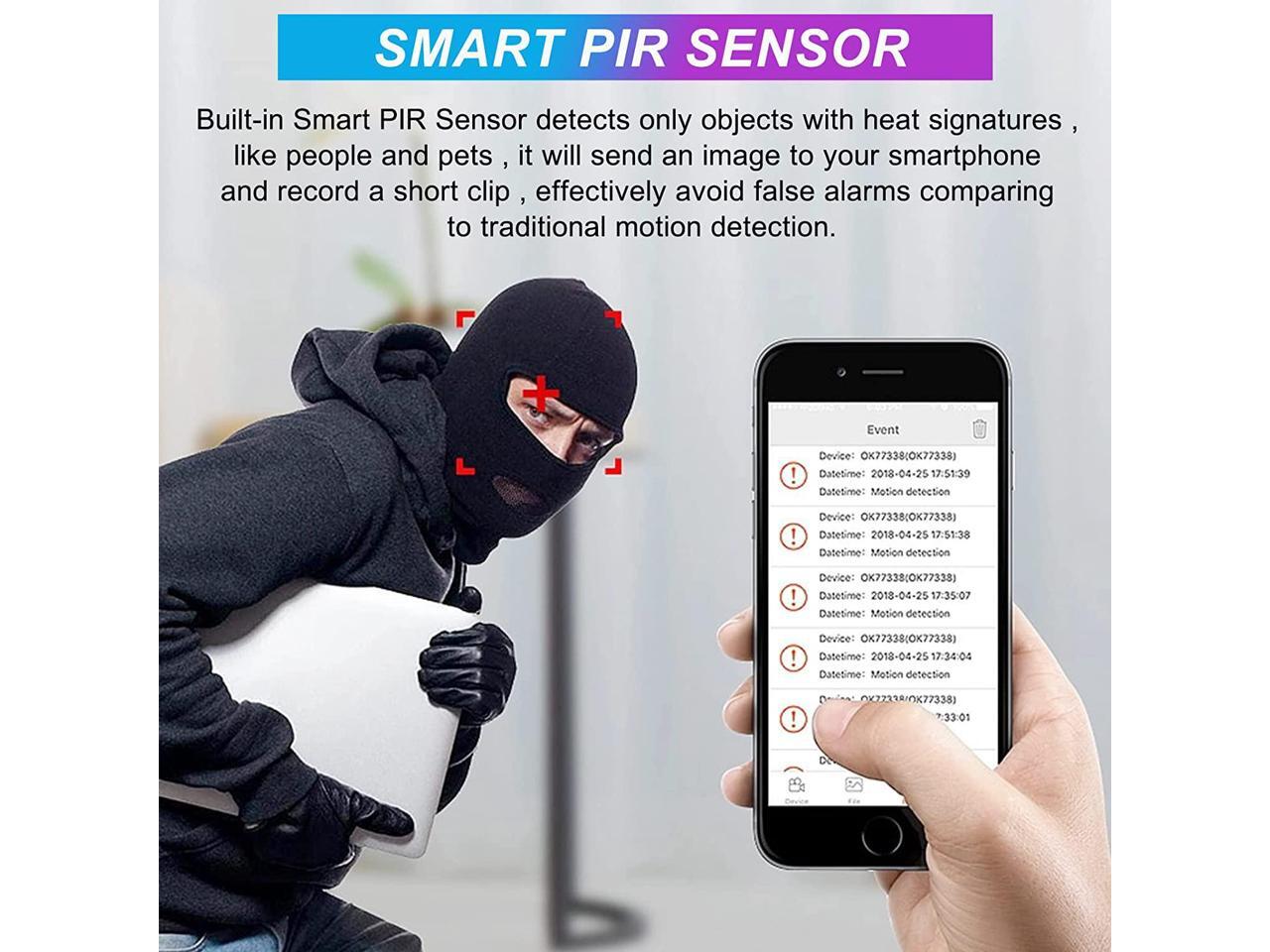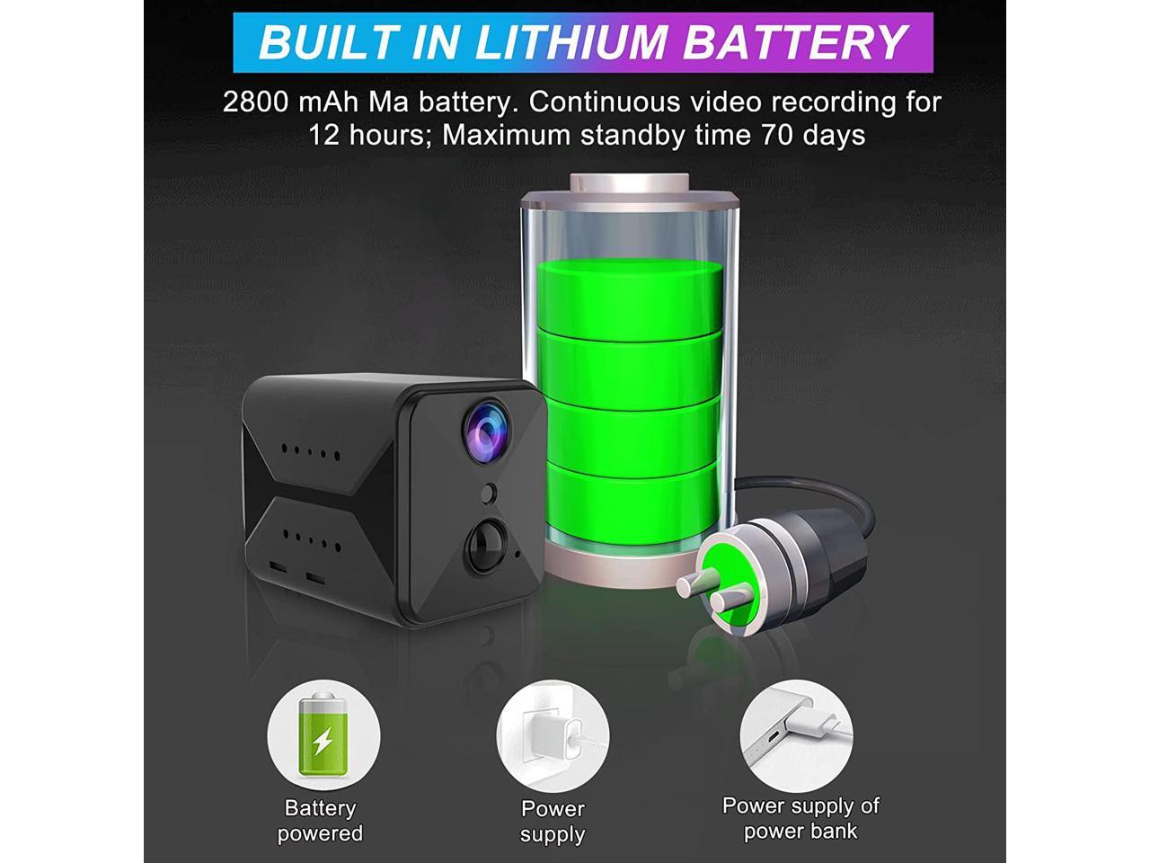 - Long Battery Life Mini CameraThis spy cam builts in rechargeable 2800mAh battery. nanny cam can record continuously for 12 hours and Standby time up to 70 days. The surveillance camera with 4K resolution and 160° wide-angle lens, which has a larger field of view and captures details.