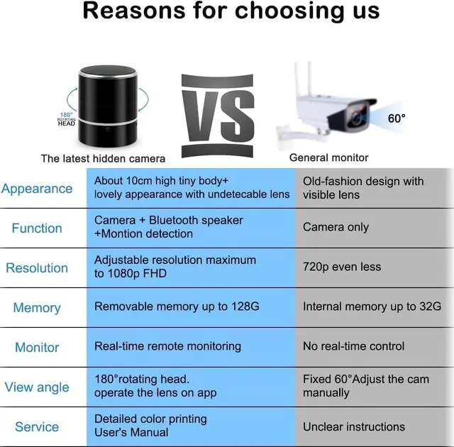 [Hidden Portable Camera Speaker] It's a unique Bluetooth speaker, and it's also a wifi covert camera. It can monitor the people around you while playing music. The camera is so well hidden that no one can notice it. This is a portable Speaker camera that you can put anywhere you want. Such as bedroom, living room, office, warehouse, even supermarket.