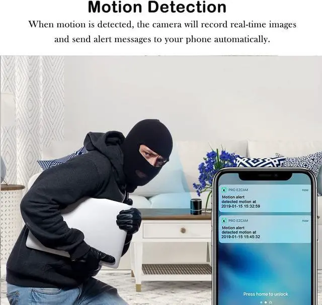 [Motion Detection Camera]For a spy mini camera, motion detection is very important. As soon as the camera detects a moving object, it sends an alert notification to your phone. Any thieves or other criminals will be exposed in front of you.