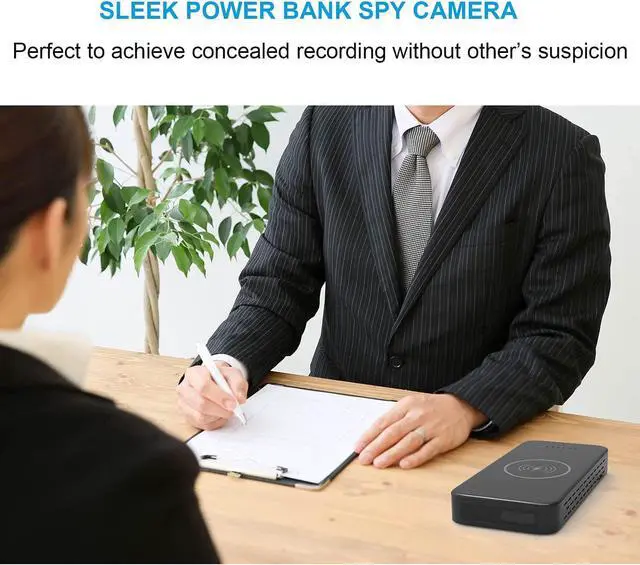 Undetectable Hidden CameraThe unit has the physical appearance of a power bank charger but also functions as a hidden camera. This makes people never notice that it is a camera and allows you to conduct covert recording. Besides, the unit also can be used as a power bank which supports charging for mobile phone wirelessly or by the USB cable.