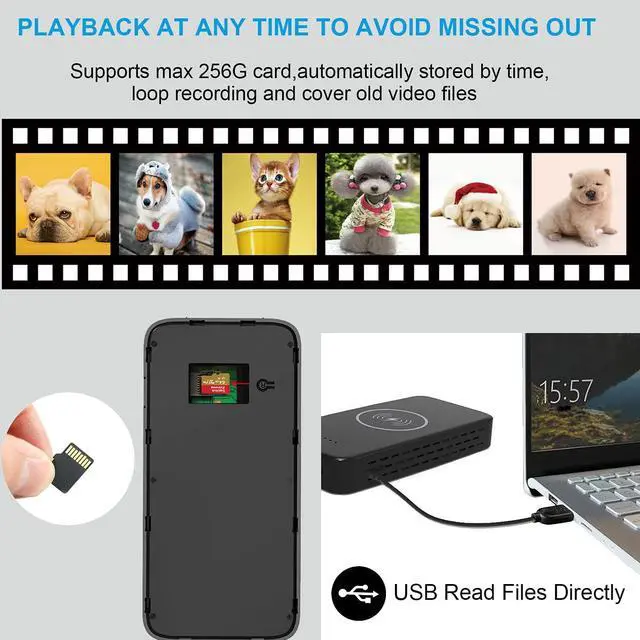 Micro SD Recording & No WiFi NeededThe power bank spy cam record and stored files in MicroSD card up to 256GB (SD card was not included that you have to prepare it), it support USB directly read files and playback videos on PC; No WiFi needed, No App, worry-free of wifi connection trouble, you can take it everywhere for recording while travelling, sport, hiking or any outdoor activities.