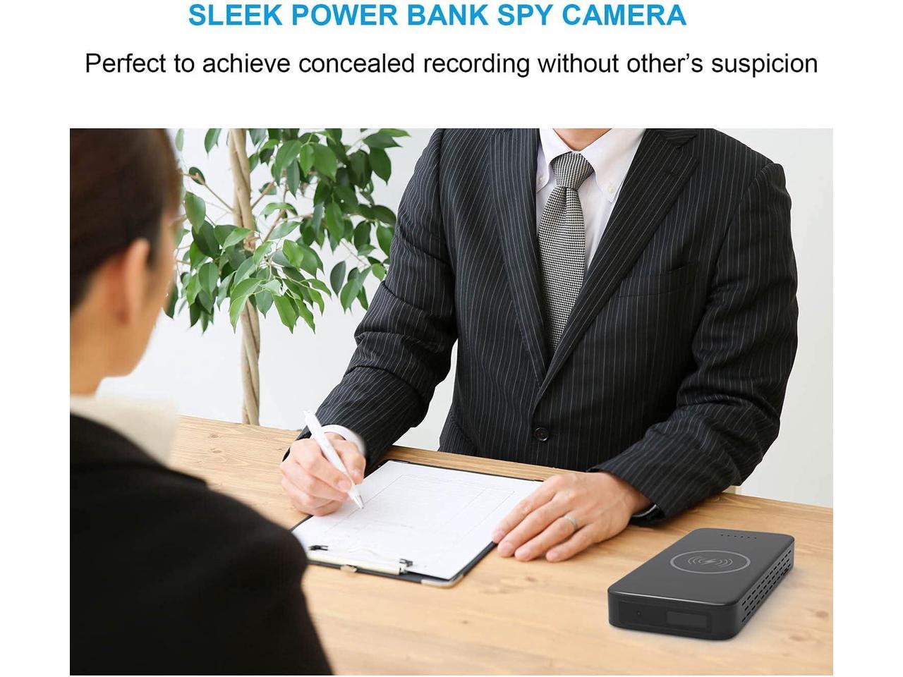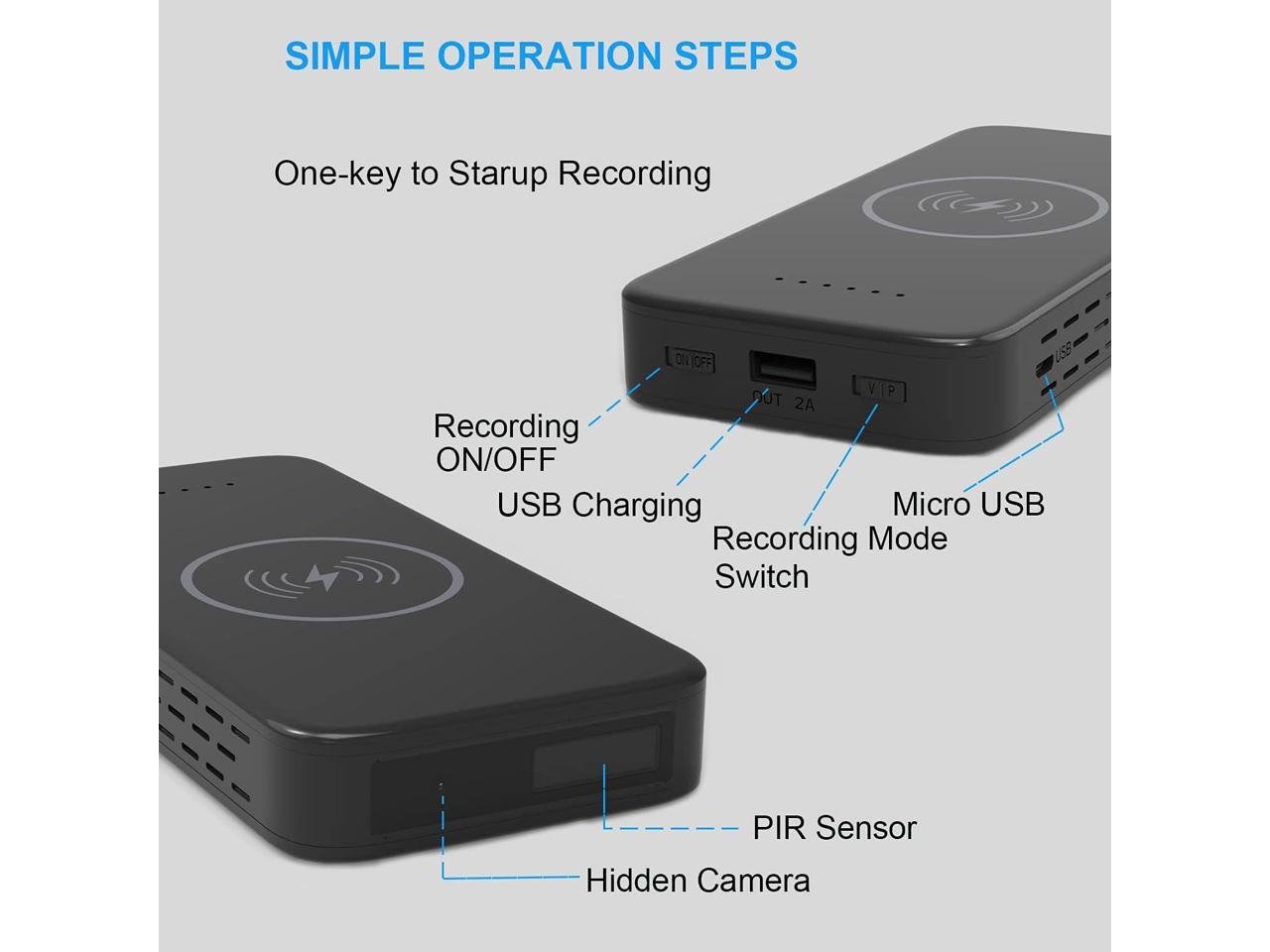 Undetectable Hidden CameraThe unit has the physical appearance of a power bank charger but also functions as a hidden camera. This makes people never notice that it is a camera and allows you to conduct covert recording. Besides,the unit also can be used as a power bank which supports charging for mobile phone wirelessly or by the USB cable.