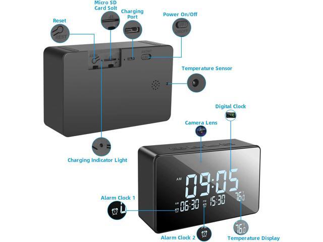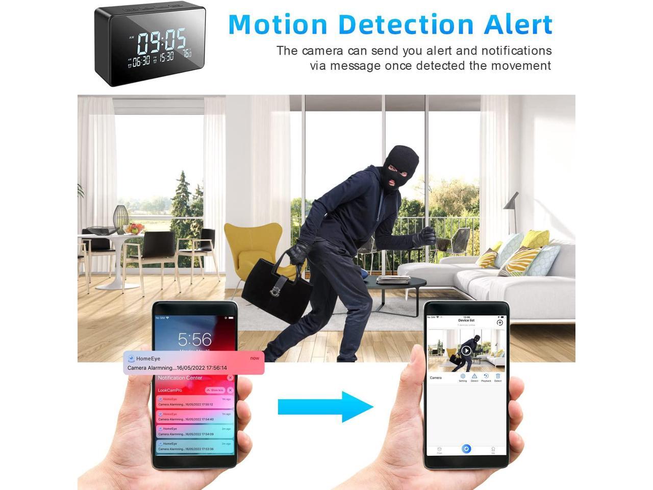 Hidden Camera Clock, 1080P WiFi Streaming Spy Camera with Night Vision Sits in Small Desk Alarm Clock, 120° View Angle Nanny Cam with Remote View, Motion Detection Alert, Video Recording (2.4G Only)