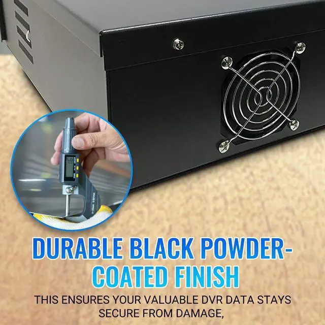 BUILT IN EXHAUST FAN: Built in fan removes excess hot air, providing a safe environment for your DVR equipment