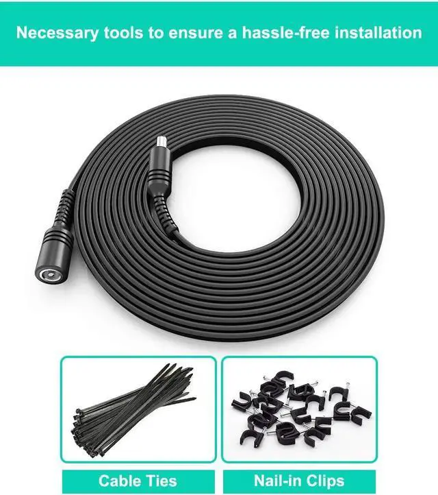 Featuring a plug-and-use design, this cable provides instant use so that you can extend the reach of your cameras in no time. Arranging the cable alongside your walls is a breeze with the enclosed nail-in clips and cable ties. Different options of lengths make this cable suitable for locales of different sizes.