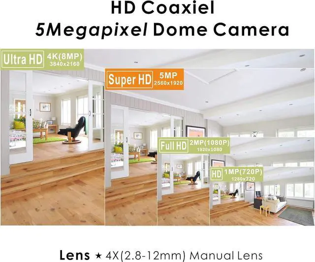 1/2.5" 5MP CMOS sensor, Super Hybrid video output to ensure high image resolution.